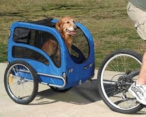 Taking your pet on a leisurely trip to the dog park or a quick errand to the convenient store is more comfortable and fun than ever. The Solvit HoundAbout Bicycle Pet Trailer lets your dog ride safely behind you, giving him lots of rest and fresh air while you get your daily exercise. The wide, low wheelbase provides stable riding and makes it easy for your pet to get in and out of the roomy cabin. Cabin includes a comfy, overstuffed, machine-washable cushion and is surrounded by a zippered vinyl layer that blocks wind and weather. The zippered mesh screen door makes it easy for you to look and reach inside the cabin during your ride. For your convenience, several storage pockets are included to carry your sunglasses, cell phone, MP3 player, water bottle, treats, toys, and more. Assembly is easy, and, when at home, the HoundAbout folds down for easy storage in your closet. The large Solvit HoundAbout Bicycle Pet Trailer measures 55 x 33 x 33 inches with a spacious cabin that measures 33 x 22 x 26 inches. Suitable for pets up to 110 pounds. Includes 1-year warranty against defects in materials and workmanship.